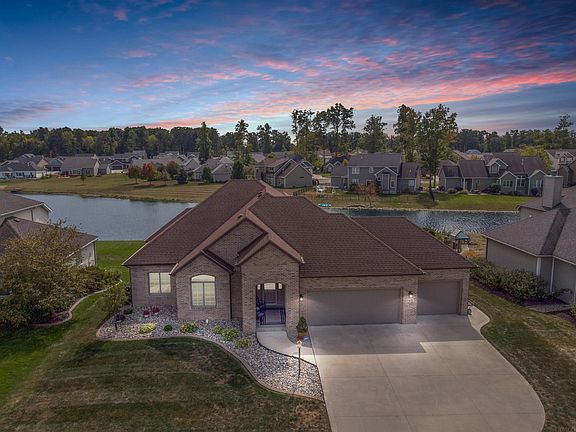 Custom built ranch on daylight basement and POND! The attractive exterior is highlighted with an extensive use of brick on the front, dramatic roof lines and a welcoming covered front porch. The interior does not disappoint! A spacious foyer with engineered hardwood flooring leads into the open kitchen and great room. The kitchen features engineered hardwood flooring, LG Appliances (gas stove, microwave, refrigerator, and dishwasher),GRANITE countertops, tile backsplash, walk-in pantry ,and dovetail cabinets with soft close. Large, Andersen picture windows offer wonderful POND views from the great room and kitchen! The main bedroom includes a POND view, a tray ceiling, two large closets (7x10 and 9x5), and an awesome bath with dual sinks, a custom tile shower, heated floors, and a jet tub. Dining room tray ceiling and wainscoting. An open stairway with metal spindles leads to the FINISHED, DAYLIGHT BASEMENT. The basement offers an exercise room, a theatre room, and a family room area with rough plumbing for a wet bar. Laundry room with cabinets and utility sink are located on main level. Seller on maintenance plan and has furnace serviced twice a year. Additional amenities include: Andersen Windows, rounded drywall corners, 2 water lines, partially floored attic, water spigot in garage, Spanish lace ceilings, gas line on deck. Custom home built by Maggos Builers.