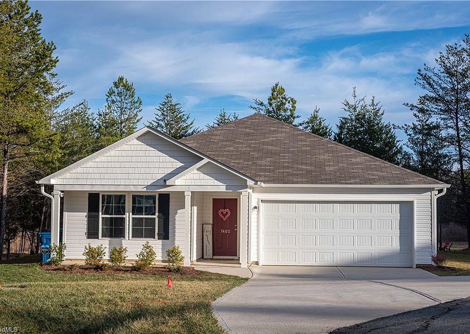 Like new, 2021 construction. Spacious, open concept, single level 4 bedroom 2 bath home, with 2 car attached garage, front porch, rear covered patio and large level backyard area with fire pit. Located in Guilford County just 10 miles from Greensboro Randolph Mega site, in the Ferguson Creek Village Community. Primary bedroom suite has a private bath, dual vanities with upgraded fixtures, and a walk-in closet. Kitchen features granite countertops, and Stainless-Steel Steel Appliances (Range / Microwave hood, Dishwasher, and Refrigerator) and ample sized pantry. Dining area adjacent to kitchen. Dedicated laundry room. Large level lot with maintained natural area and picnic table, and large level area suitable for play and outdoor activities.
