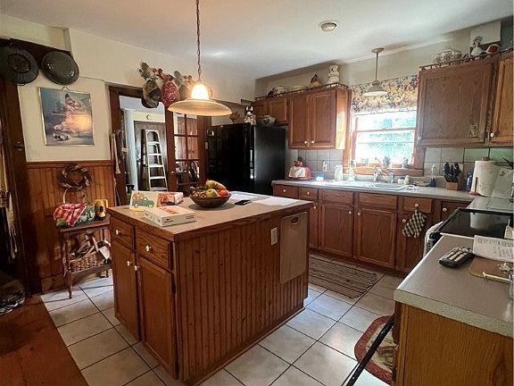 This home has to be seen INSIDE to realize the 3100 SQ Ft. All totally remodeled and restored with 4-5 bedrooms -2 1/2 baths,wide plank flooring superbly finished, and stunning fixtures through out. Downstairs has 3 large family or living rooms 1 with cathedral ceiling with LP gas fireplaces and 1 dry bar and 1 bedroom down. The upstairs is with full carpeting through out and full storage & closets in bedrooms. All NEW Furnace, NEW INSULATED WINDOWS ,washer,dryer, NEW water heater,NEW refrigerator, range, carpeting, interior painting- completely and superbly refinished and updated. This property is ready to move into with low maintenance and utilities with concrete septic tank and village water. A large, oversized garage for all your storage and toys with a full loft upstairs. BRAND NEW HOT WATER HEATER ALSO BRAND-NEW METAL ROOF!!This home has been stunningly redone.