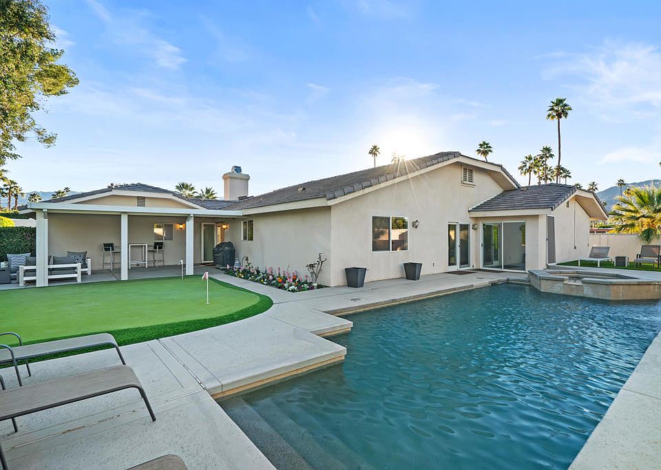 Welcome to beautiful south palm desert. Walking distance to El Paseo the deserts most popular Dinning and shopping areas. This home features a large open floor plan, private pool and spa. This turn key property was recently remodeled and includes new stainless kitchen appliances, owned solar, top of the line media features throughout the entire home.The backyard is an entertainers dreams that includes, waterfall, putting green, bocci ball court, and a covered patio with fire pit. The home is very private with foliage surrounding the parameter. The property lends itself to a multitude of buyers due to the proximity of the schools and activities.