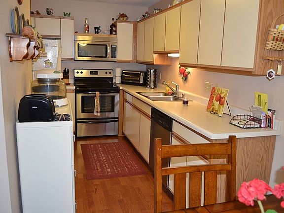 COZY, COZY COZY THIS CONDO IS DEFINITELY COZY!! :) and...in IMMACULATE CONDITION!! FEATURES INCLUDE: large bright windows, wood laminate flooring, nice galley kitchen with stainless stove, dishwasher and microwave, nice dinette area, in unit laundry, large bedroom with walk in closet, updated bathroom, gas furnace, brand new hot water heater, one of the nicest front porches I have ever seen in a condo, and an attached garage!! But there is more.. located just off of HWY 50!! TALK ABOUT CONVENIENT!!