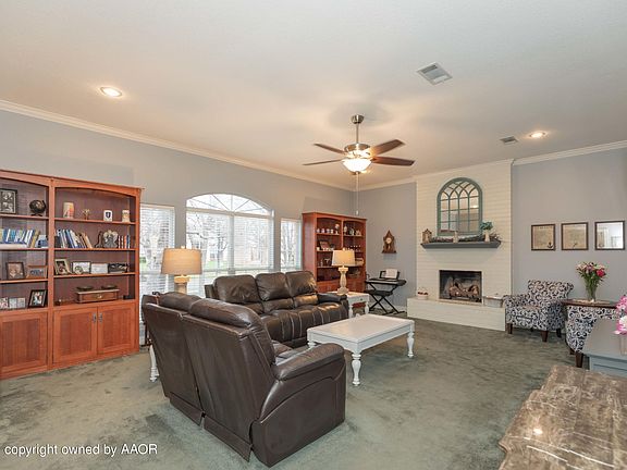 Bayswater Beauty in the Greenways! This 3 bedroom, 2 bath home features a grand sized living room with 10' ceilings, built in oak bookshelves, and beautiful gas log fireplace. Dining room boasts hardwood floors and bay window. Kitchen has gas stove, 2 pantries, eating bar, & granite countertops. Breakfast area has patio door access to the backyard. King sized isolated master bedroom with raised ceiling & crown molding. Master bath has 2 walk in closets, double sink vanity, large shower, and Jacuzzi whirlpool tub. Other two bedrooms have walk in closets. Unbelievable storage! Handy utility area. Covered patio & nice sized backyard. Sprinklers. Outdoor dusk to dawn lighting. Quality built by Standefer Construction. Three car driveway. Very affordable home in the Greenways!