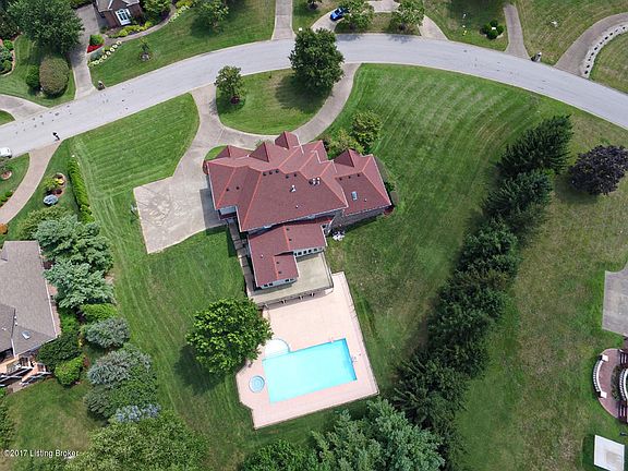 LISTED BY KELLY HAMMONS, SKELTON CO. REALTORS! 502-939-6723. Luxury Executive Property! Welcome to the Estates of Hunting Creek and our stunning 6 Bedroom, 5.5 Bath Walkout on almost 1 acre with some of the highest elevation views from the entire area of Prospect! There is a wonderful in-ground pool and a 3+ car garage including bays off of the back of the home near pool for more storage of outdoor items. As you enter the 2 story entry way, you will see the updated paint colors in the Formal Dining Room and natural light from the windows. The Living Room was formerly a music room and is a great space for an office or den as well. In the hall way you will see the Half Bath then greeted by a large Family Room, with wet bar & granite with new paint and a see thru fireplace that leads to the wonderful Gourmet Kitchen!