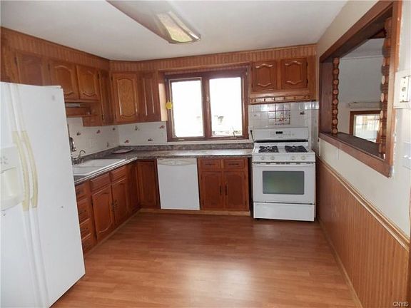 HUGE Price Reduction and Eligible for 100% Financing!! This big cape with room for everyone is ready for its new owners! 4 bedrooms, 1 1/2 bathrooms, livingroom, formal diningroom, greatroom, finished basement room, And large enclosed porch/game room/hobby room! This home has a space for everyone! Gorgeous deep lot offers lots of play space and more with raspberry bushes and grape vines, and with only an open field behind the opportunities for this lot are plenty! 192 sqrt shed/barn with power is great for workshop or storage. Seller Paid 1 Year Home Warranty for buyer from 2-10! With your finishing touches this house is going to make an amazing home!