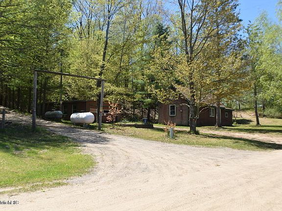 You can own this beautiful wooded acreage! A perfect private paradise for your home. Or It would be great for hunters or a peaceful weekend home. The property has two homes one a Mobile Home at the top of the hill and a cabin below. Live in one - rent out the other. The trailer has three bedrooms and 2 full baths with a half bath in the basement. The living area has an open design with a well layed out kitchen. The mobile has a full basement with an outside entrance. The cabin has l bedroom and 1 bath.