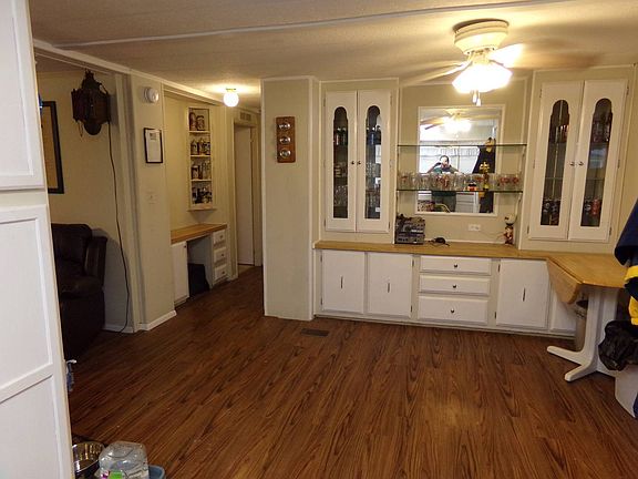 This is a 1980 double wide with an extra parking area in the carport and laminate flooring in the main living area. An eat-in kitchen has a new counter top, as well as a built-in china cabinet. The living area can easily accommodate a sofa/loveseat combo, tables, lamps and TV console. A pair of sliding glass doors lead out into an enclosed sun room with a view of the neighborhood. Down the hallway is a built-in desk unit. The guest bedroom has a closet with the guest bathroom across the hall. Both bedrooms have carpeting. A master suite has two closets as well as an en-suite. Other features include a 2015 hot water heater; a regularly serviced central A/C unit and a "roof over". Located in the age qualified community of Colony Cove. This home is priced to sell, don't miss out.