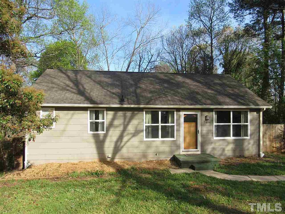 Unique house in coveted N. Raleigh near shopping, playground and greenway! House has character & many recent improvements. Master Bedroom has huge custom walk-in closet, jacknjill bath w/tub & shower. No carpet. Cute spacious kitchen w/tile, new laminate floors throughout main floor. Stainless fridge and dishwasher. Finished basement space with wet bar, laundry, windows, 2 entrances & tons of storage space. Large deck, fenced backyard.