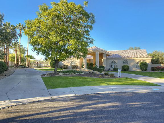 Magnificent spacious home in a quiet and secluded community by Scottsdale and Shea. Homes in this neighborhood rarely become available. Beautiful floorplan (see available PDF) with 5 oversized bedrooms, 4.5 bathrooms, including a roomy GUEST WING with a living room/ game room (25x17), separate exit, kitchenette, bar, large bedroom, full bath and 2 walk-in closets. Private cul-de-sac lot with 1.2 acres, north/south exposure, pool, ramada, private tennis court, spacious 3 car garage with sideway entry and a large covered patio. Ideal "heart of Scottsdale" location with top rated Scottsdale Schools (Sequoya, Cocopah, and Chaparral), close to popular restaurants, movies, Scottsdale airpark, and with easy access to freeways.