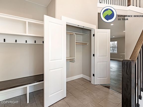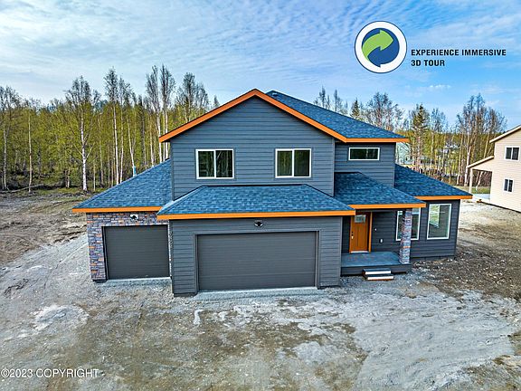 This new construction home offers a spacious entry with built in cubbies and coat rack, perfect for keeping organized. All the bedrooms are located upstairs, with plenty of space for everyone. You'll love cooking in the kitchen with its quartz counters & walk in pantry.The deep sink features a cutting board and drying grate so you can easily prepare meals. In addition to the gas range, this home features a no preheat air fry oven that will help you cook delicious meals quickly and easily. Imagine how much easier those large meals or entertaining will be! The ship lap and rock accent at the gas fireplace is stunning and provides a warm ambiance on chilly evenings. You'll love relaxing in the free-standing soaker tub after a long day or taking a luxurious shower in the walk in, dual shower set up complete with niches and product shelves. The dual vanities in the owner suite bath make it easy to get ready for work each morning. There is no carpet on the main level of this home, which makes it easy to keep clean. You'll love spending time on the covered front porch or on the rear deck enjoying Alaska's beautiful scenery. This home is located near the college and centrally located between Palmer and Wasilla, making it an ideal choice for anyone looking for convenient access to all that Alaska has to offer. HOA is $87 per year currently and water is $50 per month through Badger Utilities LLC