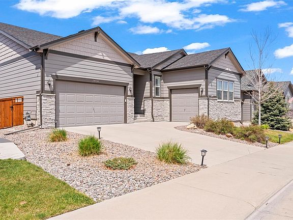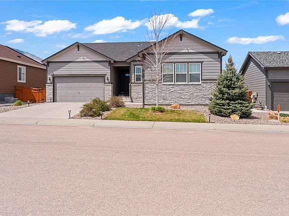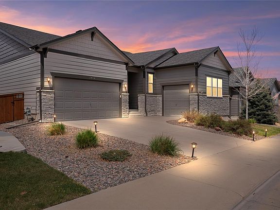 One of the most unique ranch-style floorpans in the Villages at Caste Rock! Spacious living abounds with 4 bedrooms and 3.5 modern bathrooms and an open concept layout featuring beautiful hardwood floors and plantation shutters throughout the main level that add warmth and elegance to the home and seamlessly connects the living, dining, and kitchen areas. Cozy up by the gas fireplace in the main living area, perfect for chilly Colorado evenings. The kitchen is a chef's delight, featuring high-end appliances, granite countertops, and plenty of storage space. The luxurious primary suite includes and oversized walk-in closet and a 5-piece bathroom with a soaking tub and shower. The finished basement is perfect for movie nights and gatherings, complete with surround sound and a bonus room for office or work out area. The main floor office space with high-speed fiber internet makes working from home a breeze. Recent upgrades include a newly painted interior, surround sound in the main family room, and modern wiring throughout the home. The 3 car garage is split with a 2 car garage and an additional side turn garage. Ceiling rack storage provides ample space for vehicles and additional storage. This home is close to top-rated schools, parks, shopping, and dining options. Don’t miss the opportunity to make this beautiful house your new home. Schedule a showing today and experience all that this Castle Rock gem has to offer!