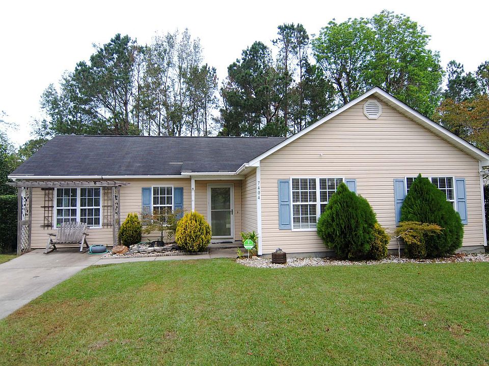 This well maintained 4 bedroom 2 bath home in Leland is located just outside of city limits and less than 10 minutes from downtown Wilmington on a quiet cul-de-sac with NO HOA. When you walk in this home you are greeted by a large living room with vaulted ceilings. and a view of the beautiful park like, fenced in yard with raised gardens, gazebo and fire pit. 3 bedrooms are on one side of the home and the 4th very large bedroom on the other can also be used as a den.