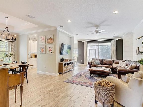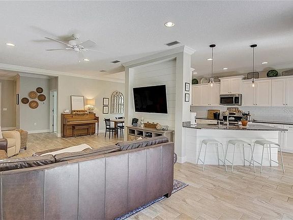 This gorgeous nearly new single family home shows like a model and is located on a peaceful preserve! This spectacular home resides in a prime location within the gated community of The Ridge at Crossing Creek. Featuring 3 bedrooms plus a den, 2 bathrooms, an open floor plan with shiplap walls, volume ceilings customized with tray accents, crown molding, and ceiling fans throughout. The chef in the family will appreciate the spacious eat-in kitchen, complete with white cabinetry, granite countertops, subway tile backsplash, stainless steel appliances, and a breakfast bar with seating. There is also a formal dining area to accommodate large sit-down gatherings. Enjoy relaxing or entertaining outdoors on the covered screened patio while overlooking the private backyard and preserve. The possibilities are endless with the backyard space and the opportunity to customize the outdoor retreat of your dreams with room for a pool. With a split bedroom floor plan, the master suite features dual closets and en-suite bathroom with a large walk-in shower. Two additional bedrooms share an adjacent full bathroom, and the den which features solid french doors can easily be used as a 4th bedroom if needed, or is perfect for a home office or fitness room. Additional features include rain gutters, and an extended 2 car garage. This home is just steps from the beautiful resort-style community pool, hot tub, grilling and entertaining area. Located minutes from I-75, this home is perfect for anyone that needs to commute or would simply like to be in the center of it all, with just a short drive to the UTC mall, restaurants, shopping, area beaches, and Downtown Sarasota. *Ask your Realtor® how you can walk this property from the comfort of your home using our Interactive 3D Showcase.*