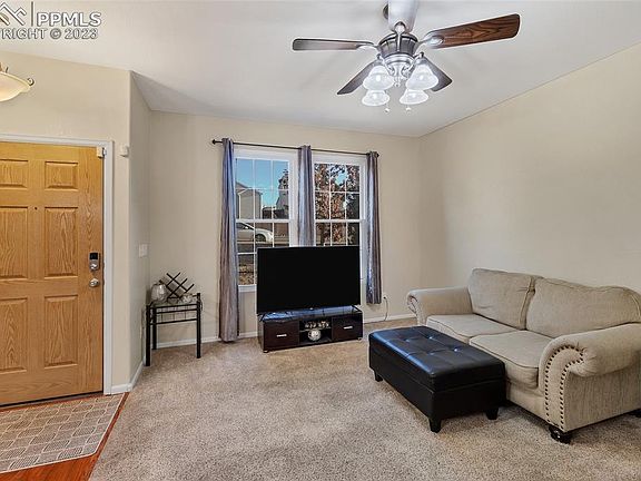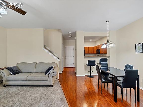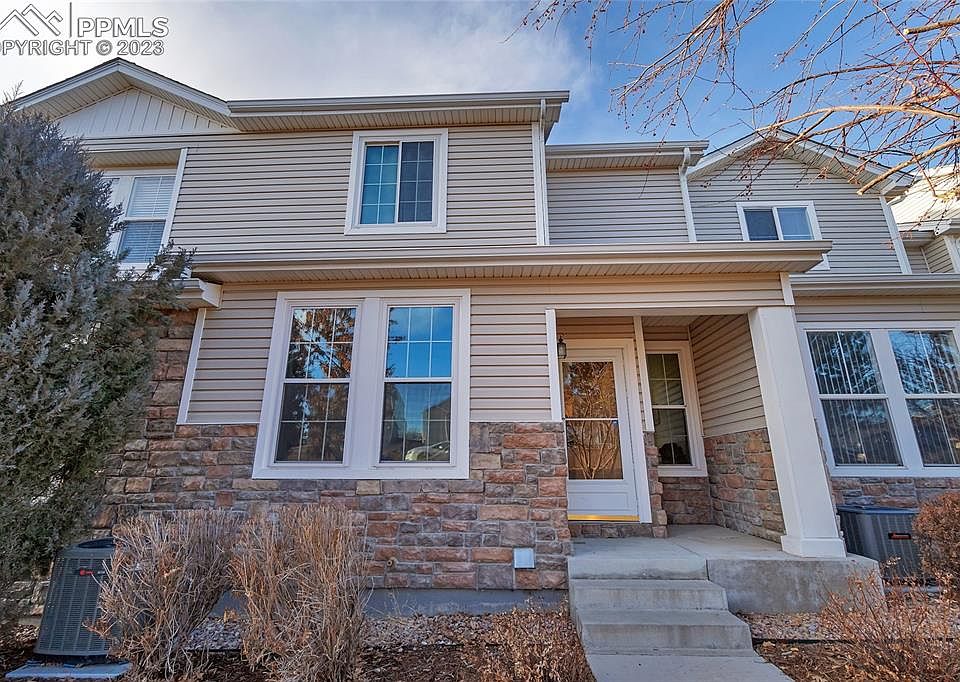**Checkout this stunning town home located in The Heights at Cross Creek** The main level features an open floor plan complete with beautiful hardwood flooring in the dining area, a kitchen that has gorgeous granite countertops and a cozy carpeted living room. You can also find a guest bath on the main floor. Upstairs you'll find the spacious master bedroom with a walk-in closet and an en-suite bathroom complete with his and hers sinks. Your laundry room will thankfully be on this floor as well as, an additional full bath and 2 additional bedrooms. Home is complete with central A/C, water softener, tank-less water heater, a 2-car garage, minutes away from a cute little park and just a jump, hop and skip over to Fort Carson.