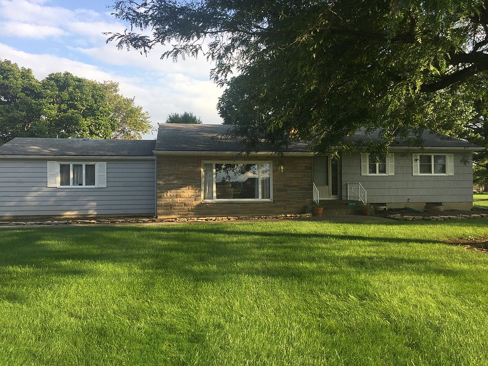 Ranch Style home on a 1.12 acre lot in town! Attached 2car garage. Oak hardwood floors throughout. Stone wood burning fireplace, crown molding, master bath, enclosed porch, covered back patio, full finished basement with bar and fireplace, new air conditioner ,gas water heater, and boiler system.