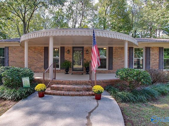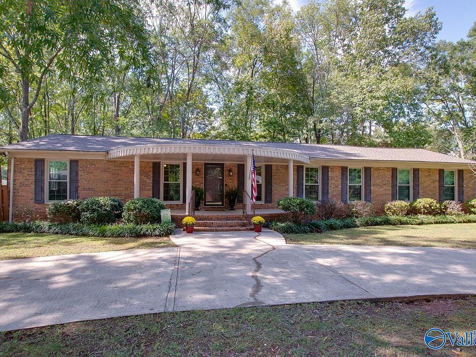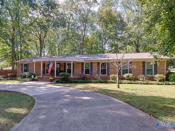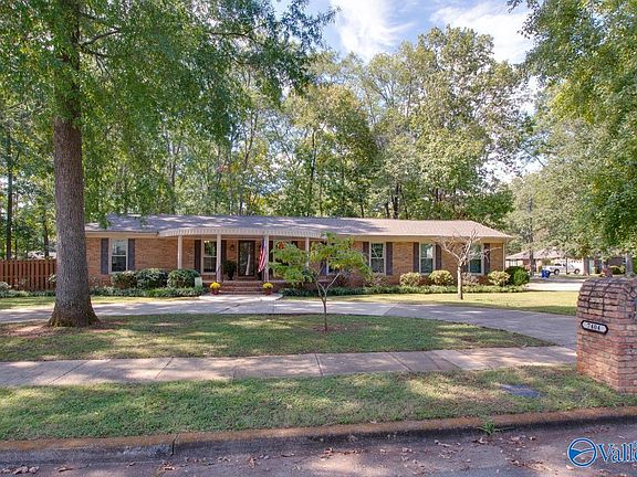 Such a lovely setting for this 4 Bedroom, 3 Bath full brick Ranch, in one of SE H'ville's most treasured neighborhoods. Just one block from Aldridge Creek Greenway, this home sits on .56 Acre lot w/ a lovely circular drive + side entry garage entrance. Hardwood floors, Smooth ceilings, Crown moulding t'out! Remodeled Kitchen w/ multiple living & dining spaces. Family Rm has Gas FP & b'ful Built-ins. Primary BR has 2 closets & Double Vanities in updated Bath. Great Laundry Rm! Step out to the large deck in backyard & take in the oversized corner lot, fully fenced. Windows replaced on front, Roof '24, HVAC '23...and so close to Valley Bend Shopping, New SE H'ville Library & Redstone Gate!