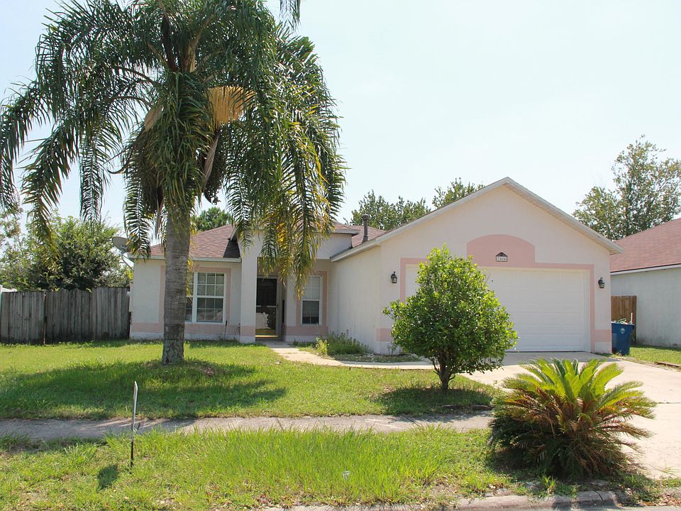 Beautiful lake view home. The inside is clean and bright with newly painted interiors. Upon entry, you are welcomed by a open, spacious great room with plant shelves and arches. Sliding door leads to a nice fenced yard on the lake. Open kitchen comes equipped with appliances; overhead microwave, dishwasher, refrigerator, gas range and oven. Utility room with washer and dryer included. Master bathroom with walk in closet, bathtub and separate enclosed shower. Quiet Gas Community.