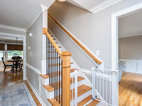 Charming 3 story home in highly desired Woods of Stonehenge. Virginia White Oak hardwood floors cover the first floor going through the family room, kitchen and dining room, as well as the stair treads, upstairs hallway, and primary bedroom. A combination of detailed crown molding and stunning updates gives this beautiful home an elegant but homey feel you want to come home to. Two bedrooms and owner's suite on second floor and a loft, office and unfinished attic space on the 3rd floor. Outside you are greeted with large deck, patio, attached storage area and landscaped fenced in backyard. Total square footage includes the non-permitted 3rd floor loft and office, not the 95 sqft of unfinished attic space. Propane tank is lease. Multiple offers have been received. Please submit offer by 9pm, Friday, September 8th.