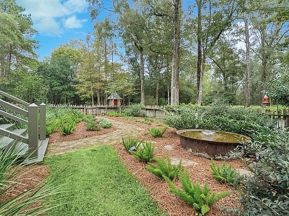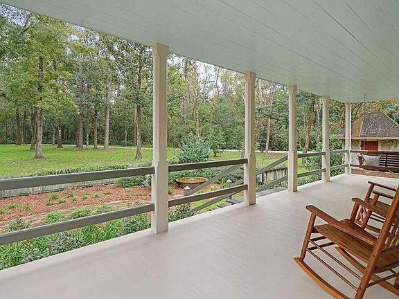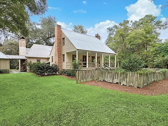 Rarely is an offering with such historical and architectural significance presented to the market. The "Lum House", a c.1830 Creole Cottage originally constructed in St. Landry Parish, was moved to Covington's prestigious Military Road in the 1990s, at which time the renowned Louisiana architect A. Hays Town was engaged to oversee a full renovation and addition. The result is a home which lives for today and seamlessly melds the aesthetic of two centuries. The original cottage employed the "Bousillage" technique inherent in Louisiana French Vernacular Architecture. Signature Hays Town design elements prevail in the addition, including antique floors, beams, and brick and beam walls. The star of the show is a massive cooking fireplace with smoker and beehive oven, constructed with over 30,000 bricks and 3 independent flues which anchors the living room. A newly renovated open kitchen with Taj Mahal Quartzite counters, upscale appliances and a spacious pantry will be the heart and center of the activity. Renovated baths, and full exterior paint are among the other recent upgrades. This home evokes the timeless aura of days gone by, situated on 7 rolling acres overlooking the Little Bogue Falaya River with a white sandy beach, old-growth plantings, abundant oaks and a citrus grove. Two "pigeonniers", one a potting shed and one a chicken coop, and a fabulous vegetable garden round out the property. Set far back from the road with an electric gated entrance, ensuring privacy and peacefulness, this is a very special and rare property only minutes into Old Covington's restaurants and festivities.