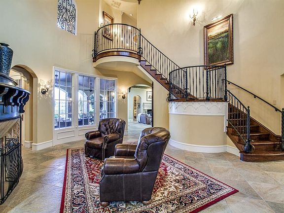 Beautiful, Stunning, Unique,are just a few of the words used to describe this Fuller Custom Mediterranean home. Located in the EXCLUSIVE GATED community of Isleworth in Stonebridge Ranch, this home was built with stunning craftsmanship and is located on a GOLF COURSE and LAKE lot.The backyard living space with pool, hot tub and kitchen overlook the GC and lake. Views are highlighted further from the upstairs balcony.A great place to view hot air balloons, and more.Inside the Gourmet kitchen and family room take advantage of the exterior views.With 5 bedrooms,4.5 baths,3 living spaces,4+garages 5 fireplaces and 3 stairways, there is something for everyone. BEDRM 5 is a flex room with closet. Current Use-Media Rm