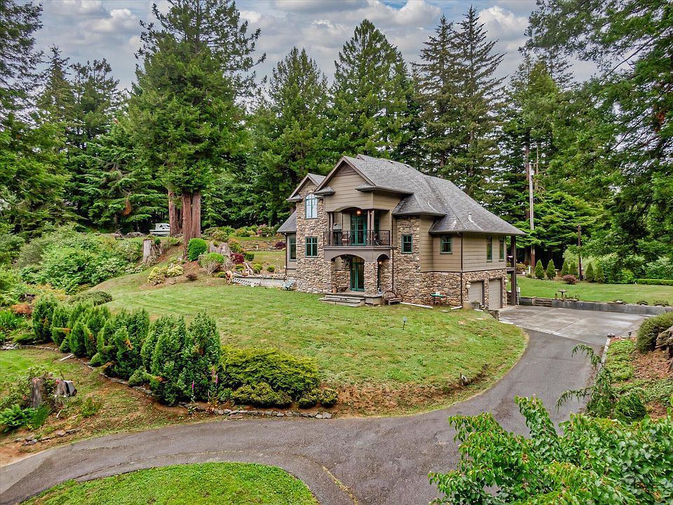 Custom, one of a kind design, This house is built with next level quality. exotic woods, travertine tile entry way, granite counter tops. Soaring vaulted ceilings in the living spaces. The kitchen has top quality appliances and cherry wood cabinets. Living room has a fireplace, french doors to the backyard and a large outdoor patio. Surround sound speakers and listening stations in each part of the house, balconies on the second floor and off the bedroom, 2x6 outer wall construction, There is a 3rd room that could be used as a bedroom. This is an exquisite home. Take advantage of the peace and tranquility of this 3.5 acre oasis with large windows, fully landscaped grounds and completely fenced. Huge Garage
