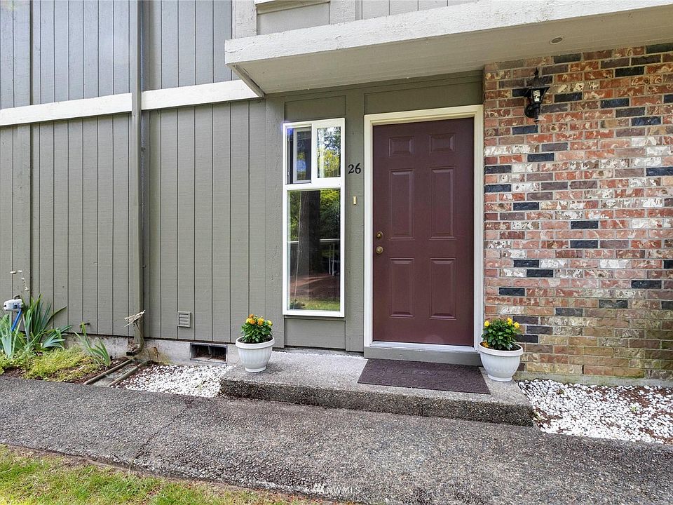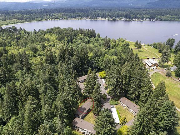 Simplify your life with the convenience of a Sylvan Terrace condo in a quiet country setting on Black Lake. Enjoy Trails, lake dock with benches & swim beach. Well cared for & move in ready with private rear patio, with grass & forest views. Laminate wood flooring downstairs, spacious living room with big picture windows, cute kitchen with dining space & home office area, 1/2 bath & laundry on the main. 2 nice size BR's up & full bath. 32 condos on 10 acres. Old growth trees on the trail to lake with creek crossing. Kayak, swim, paddleboard & fish. 1 Covered assigned parking, open parking available for guests. Close to Kennydell park. 10 minutes to town. 4 units per building. Water, sewer, garbage, yard mntc included in dues. Furnace.