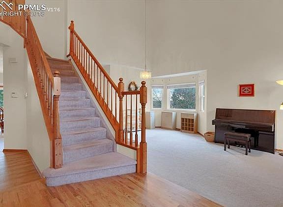 Five bedrooms all with walk in closets! Three bedrooms upstairs including generous master bedroom with five piece bath and large walk in closet. Other two bedrooms have Jack & Jill bathroom as well as vanities in bedrooms. Main level has brand new wood floors and paint. Floor plan is open and spacious. Central AC! Gas fireplace in family room opens to the kitchen. Lower level has two additional bedrooms, large family room and its own full bath. Lower level is a walk out with plumbing for wet bar or mini kitchen. This West side home is close to Open Space trails, parks and schools. Views are great! Cheyenne Mountain is visible from Master as are other big, open views of the ridges nearby. Have a two story Christmas tree in the living room, bbq's in the backyard with shade, or enjoy the Crab Apple trees flowering in the Spring! Back yard is fenced, private and has mature trees and landscaping. Xeriscaped front=low water bills.