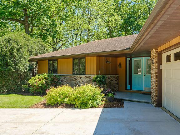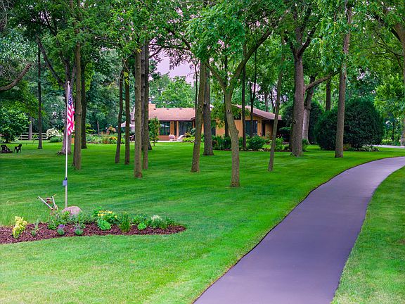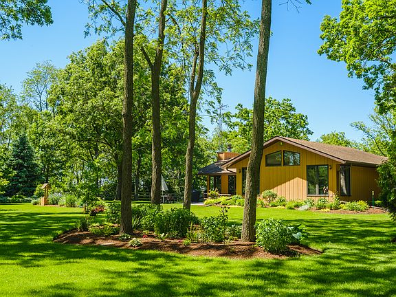 *******Multiple offers received decision made by 8/19/2024******* Welcome to a timeless mid-century ranch home nestled on a stunning 5.99-acre property, offering a perfect blend of modern architecture and natural beauty. The exceptional residence boasts three bedrooms, two baths, and a spacious grand room with dramatic cathedral ceilings and a cozy fireplace. The kitchen features quality cabinetry and generous countertops, creating a heartwarming center of the home. The large primary bedroom looks so welcoming and so comfortable, big bathroom with shower and jetted tub, dressing room and lots of closets. A convenient first-floor laundry room with many cabinets and an attached oversized heated garage with a durable epoxy-coated floor adds to the home's comfort and convenience. The full finished basement provides ample space for entertainment, with room for a pool table or a perfect theater/projection experience, along with a second kitchen or bar area. The property's allure extends outdoors, with a driveway leading to total seclusion, mature trees, and spectacular views not only from the primairy bedroom and the grand room, but from the patio. In addition, the property has three small prairie areas plus several other landscaped interest centers. For those seeking additional space and utility, there is an expansive pole barn (2100 sq feet) with workshop, storage shelves, and doors on two sides (sliders and overhead) offers ample room for tractors, toys, and more. This home was meticulously designed and built by the current owners, and is the perfect canvas for creating precious memories. Experience the best of the country living with this exceptional offering.
