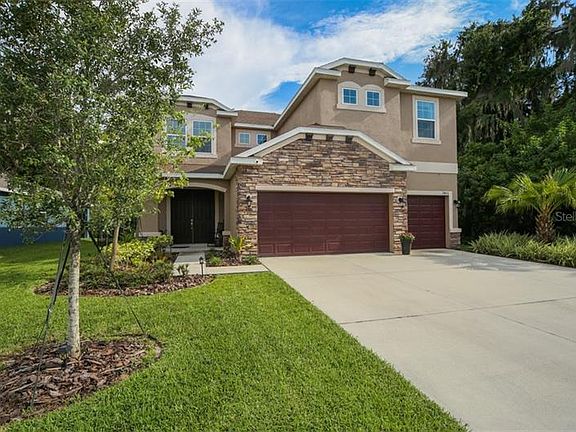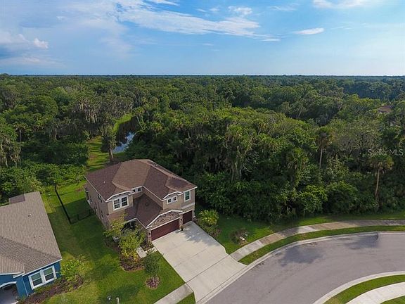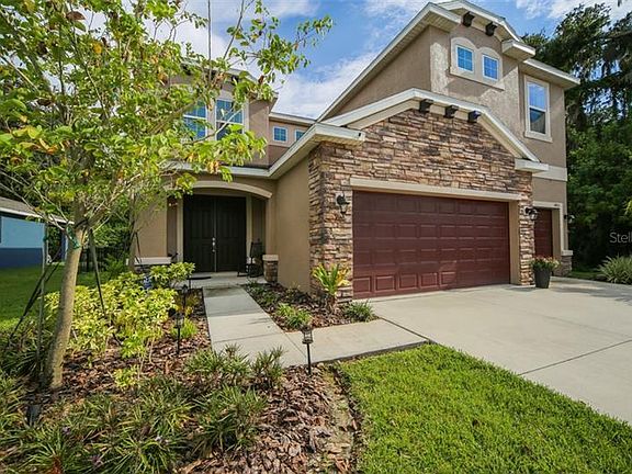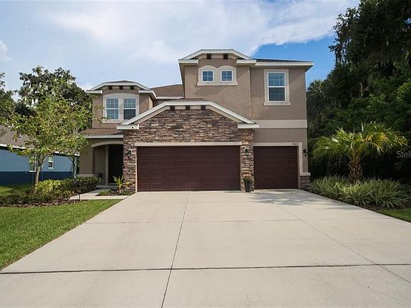 Best location in Old Mill! This beautiful 5 bed 4 FULL bath home is situated next to a wooded preserve area and has breath-taking views of the lake from the back lanai and elevated windows on the back of the house. There is no houses on the opposite side of the lake and the way the property is fenced and how it is wooded all the way around the lake makes it feel like your on your own private lake. The large kitchen features stainless steel appliances, upgraded quartz counter tops and plenty of cabinets for storage. There is a bedroom and full bathroom downstairs. The community is gated and is conveniently located less than a mile away of the elementary and middle school. Its just a short drive to grocery, restuarants and the outlet mall. NO CDD fees and low HOA fees make this community very desirable. This home will not last long! Schedule your appointment to see it today before its gone!