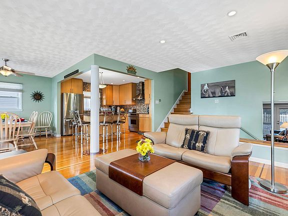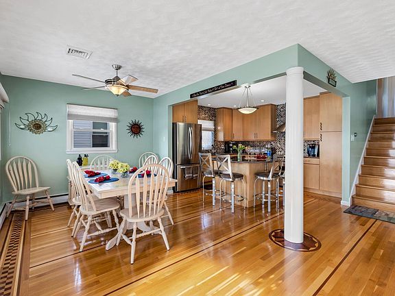 Your long-awaited dream home awaits at 7405 Monmouth Avenue, nestled on an unusually large 50 X 95 lot in Margate's sought-after ABC neighborhood. This 3-bedroom, 1-bathroom with 2 half baths residence warmly welcomes you from its quintessential front porch. Step inside, and custom hardwood floors with mahogany inlays guide you through the open layout of the main floor, featuring a living and dining area, and a recently renovated kitchen with top-of-the-line stainless steel appliances, a large center island, and custom cabinetry. The home's layout offers the convenience and privacy of a multi-level design. A short staircase to the upper level, revealing three spacious bedrooms and a shared full bathroom, with the primary suite offering the added convenience of an ensuite half bath. Descend to the lower level, opening to an impressively sized recreation/family room with a built-in bar area, a charming wood-fired stove, and access to another half bath and a large laundry/utility room. Double doors lead outside to an expansive partially fenced backyard. The property also features an extremely long driveway accommodating 5 or more cars. Updates include the addition of a 2-zone central air system in 2022 and a recent kitchen remodel. This home presents expansion opportunities with its spacious lot, leaving room for the addition of a pool, hardscaping, and cabana. Perfectly situated just four blocks from the beach and a leisurely stroll from Margate and Ventnor's beloved eateries and shops, make this home yours in time to create those summer shore memories!