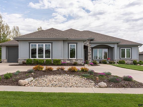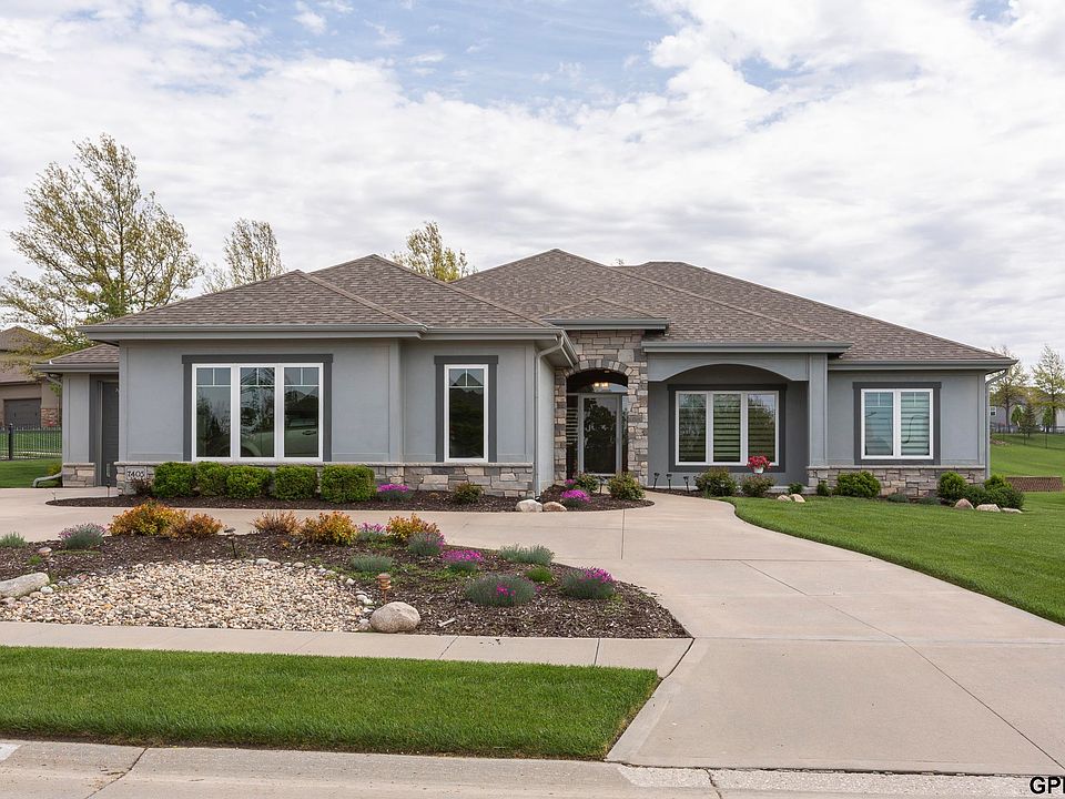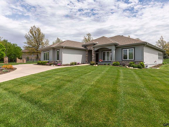Spacious and immaculate ranch with great accessibility including zero entry. Open entryway with hardwood flooring and loads of light! Great room features hardwood flooring, cozy gas fireplace and vaulted detail ceiling. Gourmet kitchen boasts granite counters, SS appliances and oversized walk-in pantry with room for a second frig. Adjacent dining and 4-season rooms offer spacious entertaining areas. Flex/dining room and 2nd bedroom with 3/4 bath on the main level too. Finished lower level hosts a huge bedroom with mammoth closet space and built-in shelving, another 4th bedroom also media area, wet-bar and bath. New shingles & gutters. Enjoy views from the front covered porch or backyard hot tub and oversized yard. Community offers 2.5 mile walking trails, 30-acre fishing lake, clubhouse, fitness center and two pools! AMA - Act now!