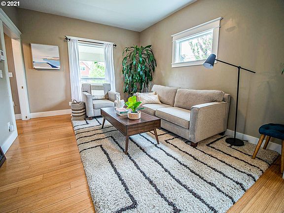 Darling bungalow flooded with light! Open living/dining plus main floor den/office for all your Zoom needs. Spacious updated kitchen w/stainless appliances and nook. Coveted floor plan w/3 bedrooms up. Full basement w/outside entrance and tall ceilings ideal for home gym,office,media room. Bamboo flooring throughout. Fenced back yard with patio and covered pergola for enjoying the outdoors regardless the weather. Fantastic location between University Park & St Johns w/restaurants,coffee shops! [Home Energy Score = 1. HES Report at https://rpt.greenbuildingregistry.com/hes/OR10182517]