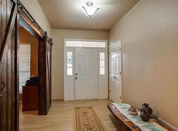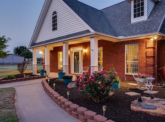 Country living at its best! Fabulous 3 bedroom home with an office, massive bonus room, walk in storm shelter, pet wash, open floor plan and a brand new roof! Located just minutes from shopping and the new west side high school, it is a rare and precious find. Sitting on 8 acres and far off the road for additional privacy, this home features 3 horse stalls, a large workshop or storage shed, acreage for farm animals and also privacy fencing. Upon entering the foyer, you'll view the backyard through the floor to ceiling windows. A must see!
