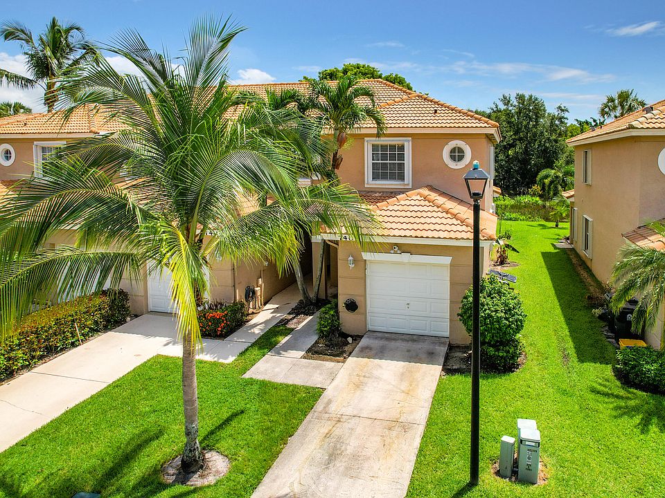 Beautiful 3 bedroom and 2.5 bath townhome. End unit with lots of windows for natural light and good airflow. A RATED ELEMENTARY, MIDDLE, AND HIGH SCHOOL!!! Gated community, 1 car garage and Jack & Jill bathroom upstairs. AC recently replaced in 2021. Brand new electrical system including grounding in 2023. Water heater replaced in 2020. Screened in patio in the back. HOA includes cable, pool, spa, gym, and clubhouse. Lots of value for low HOA fee. Can be rented out immediately. Less than 8 miles to the beach and the Wellington Mall. Make this beautiful townhouse in a prime location your next home!