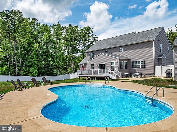 Step into the lap of luxury with this nearly new Dunleigh model home, which represents an extraordinary opportunity to own a property loaded with enhancements and improvements, all at a price well below the replacement cost. As you enter the grand two-story foyer, you'll be greeted by the allure of gleaming hardwood floors, a versatile solarium/flex room, formal living and dining spaces, a private office, a welcoming family room with a gas fireplace, and a gourmet kitchen that's a culinary enthusiast's dream, featuring a large island, tile backsplash, and premium appliances. The second level boasts a magnificent primary suite with a sitting area, an expansive walk-in closet, and a dreamy super bath, complemented by two bedrooms sharing a Jack and Jill bath and a fourth en suite bedroom. The fully finished lower level promises endless entertainment possibilities with a spacious recreation room, a full bath, a fifth bedroom, ample storage, and a dedicated theater room. Step outdoors to your private oasis, complete with a maintenance-free deck, heated saltwater pool, detached two-car garage, extended driveway, fully fenced yard, and a fire pit, all contributing to a sense of peace and tranquility. Olivers Crossing community offers trails, a playground, and more, while its convenient location ensures easy access to shopping and commuter routes. Embrace the opportunity to own this exceptional property and relish the lifestyle you've always desired.