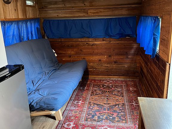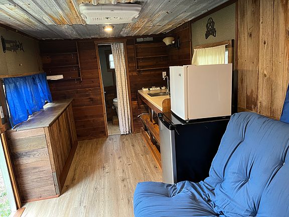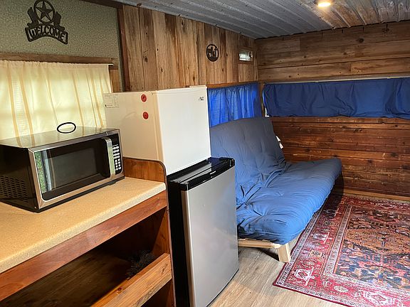 This is a retro trailer that has been completely remodeled inside. It has a double futon that functions as a couch and folds down to a bed. There is a counter/table in the kitchen against the windows that opens up for storage. There is a small closet in the bathroom. This trailer sits hidden on 3 wooded acres. This trailer is tucked into the middle of the land and not visible from the road. It is accessed by a hard packed dirt road. Nice place for a single person who likes quiet and lives very minimally. Water is suppled by a well. Its location is on Thomas Springs road, off Hwy 71 near Southwest Parkway. Available immediately. Rent $600. Deposit $600. Years lease required. Water is free from a well. Good water. Electricity is metered and figured each month and paid to front tenant. Pedernales electric.