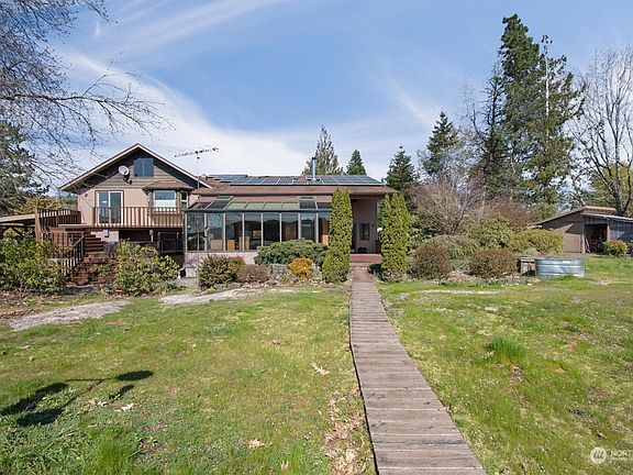 Rare opportunity to own a Columbia Riverfront home with approx. 250 feet of water frontage and 2.5 acres! Just seconds from Willow Grove Park and public boat launch, this unique, fun home with detached ADU has a lot to offer. Expanded and updated over time, the primary home has approx. 2800 sq. ft. and features a vaulted great room with tile floors, light filled sunroom, two bedrooms and baths, office, heat pump, solar panels, hot tub with a view and more! The character filled, fully contained, detached "round house" adds over 1000 sq. ft. Over 1200 sq. ft. of garage space plus carport parking for three vehicles or RV's. completes the package. Take a look...you won't want to leave!