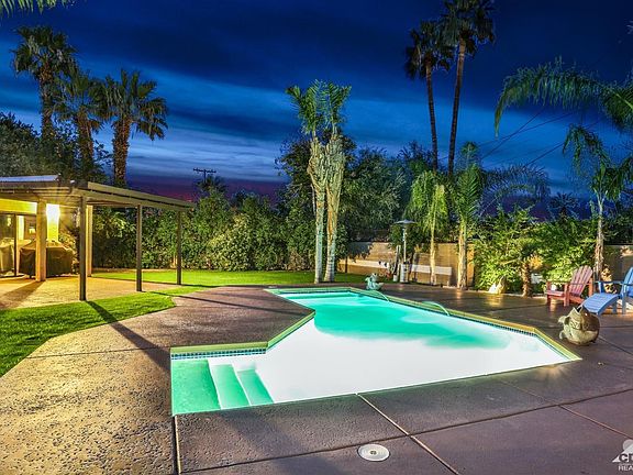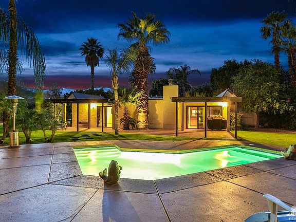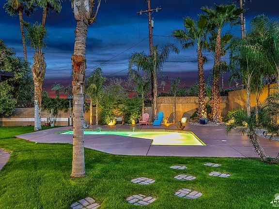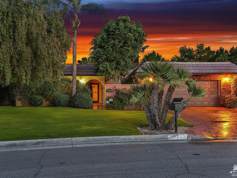 Welcome Home! Lushly landscaped, California Ranch home, in No. Palm Desert, just three Blocks from El Paseo. Upon entering the gated, landscaped courtyard, you are welcomed by a rock water feature and a stained glass entry door.The interior boasts travertine tile and crown molding throughout. Newer double pane windows. Interior doors have frosted panels for privacy while allowing light in. Large living/dining room and family room with gas fireplace opens to the spacious kitchen. Bathrooms have been upgraded including custom etched designs on the shower doors. Bedroom closets have built-ins. The very private, lushly landscaped, south-facing backyard is enclosed by a block wall,perfect for entertaining. A sparkling pool, stamped concrete patio/deck and two lattice covered patios with misters are great for year round enjoyment. Over-sized 12,600 sq.ft. lot has room for RV parking, another garage or casita. Close to the McCallum Theatre, COD, PD Civic Park and Living Desert/Zoo