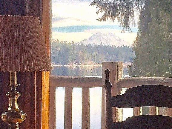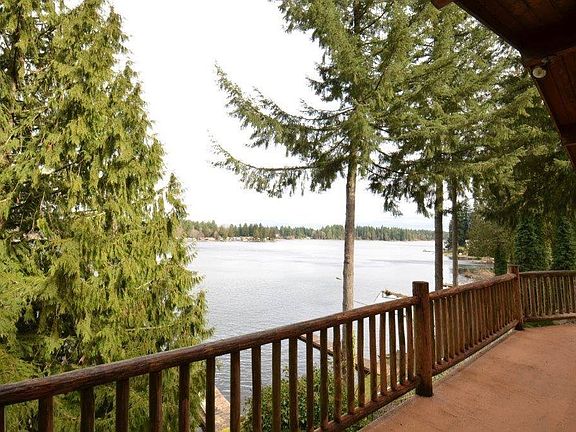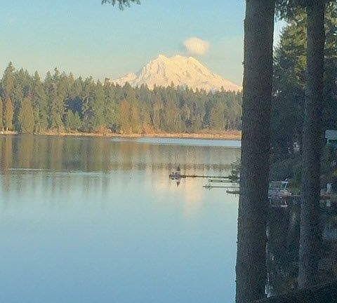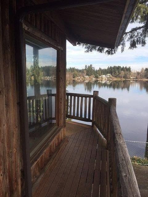 Ohh yes.. imagine mornings on deck of this unique log home on Olympia's popular Pattison Lake.. 180 degree panoramic Lake & Mt Views. Shoreline beach seating w/ firepit, boat house, dock w/seating & swim ladder. Front dutch door to feel the soft breeze into open floor plan. River rock gas fireplace, patio door deck off living/dining areas. Lg picture windows w/views. Lower 2 bdrm, 1 ba MIL w/ river rock fireplace, kitchen, bath & utility & deck/patio & stairs to beach. Swim, fish, wildlife!
