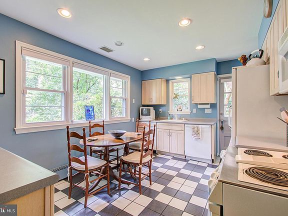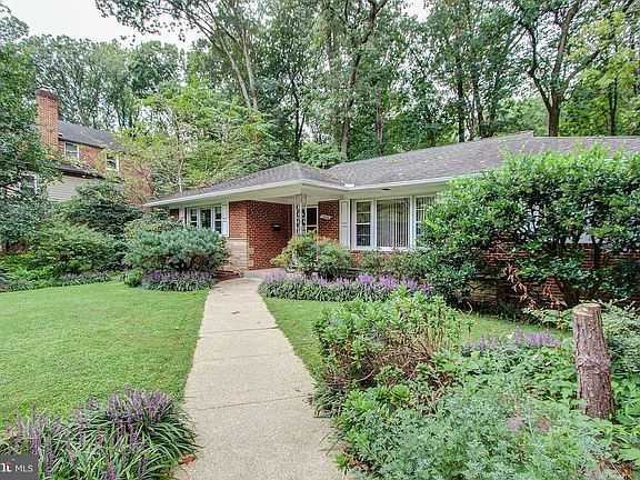 Stately, spacious midcentury home in wonderful sylvan setting - just over a quarter acre - backing to woods and creek! Generous room sizes abound in this tastefully appointed and lovingly maintained home. Large dining room opens to living room with fireplace, picture window overlooking terraced yard and woods. True primary suite. Lower level features newer hardwood flooring, large family/ rec room with additional fireplace, wet bar, and glass doors walking out to patio - which in its turn is all setup for a hot tub. Abundant storage via large unfinished portion of lower level, as well as garage with sufficient capacity for a boat. (Or workshop or garage gym!) It's all here!