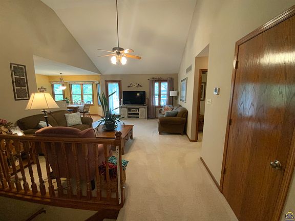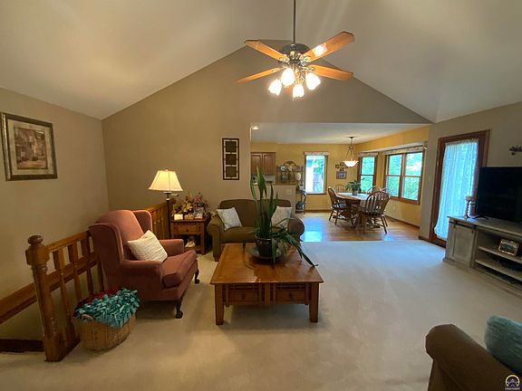 Well maintained Ranch in Washburn Rural School District. Spacious throughout. Hardwood floors in kitchen/dining area, breakfast bar and open to living room with vaulted ceiling. The primary bedroom has coffered ceiling and large walk-in closet. Another bedroom and full bath on main floor. Head downstairs to find a second living area, 3rd bedroom and 3rd full bath and plenty of storage. Enjoy fall evenings on the deck or patio while enjoying the beautiful landscaped yard. See this one today!