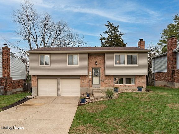 Welcome to your next home, tucked away in the desirable community of Orchard Grass Hills in Oldham County. This 3-bedroom, 2-bathroom property offers 1,650 finished square feet of comfortable living space, a walk-out lower level, and a peaceful, fenced backyard with scenic nature views. Step inside and you're greeted by a bright and airy entryway, with natural light streaming through the beveled glass transom. The spacious family room, framed by two large windows, feels open and inviting. Details like a classic chair rail and a stylish light fixture add a touch of elegance, while the open floorplan creates an easy flow into the eat-in kitchen. The kitchen features hardwood floors, plenty of white cabinetry, and a beautiful backsplash added in 2018. A breakfast bar offers convenient (cont) seating, while the dining area has room for family gatherings. From here, step out onto the deck for morning coffee or dinner under the stars. The primary bedroom is a true retreat, with soft carpeting, crown molding, and a large triple window that frames peaceful, tree-lined views. The en suite bathroom has tile flooring, a shower/tub combo, and ample storage. Two additional bedrooms, painted in neutral tones, provide plenty of space and natural light. A second full bathroom, with tile floors and a wooden vanity, serves these bedrooms. The finished walk-out lower level offers endless possibilities. Whether you envision a game room, home office, or cozy den, this space has you covered. The exposed brick fireplace adds warmth and character, while sliding glass doors lead out to a patio that expands your outdoor living space. The fenced backyard is a nature lover's dream. Enjoy the peaceful, tree-lined views, watch deer and birds, or relax on the partially covered deck. Whether hosting friends or savoring a quiet evening, this outdoor space offers privacy and charm in every season. Orchard Grass Hills is home to Briar Hill Park, where you'll find a playground, picnic shelter, tennis and volleyball courts, and walking trails. Recent updates, including new soffit and gutters (February 2024), ensure this home is ready for you to move in and enjoy. This home blends comfort, style, and the serenity of nature. Seller is offering a one year home warranty to the Buyer! Schedule your visit today and see why it's the perfect place to call home!
