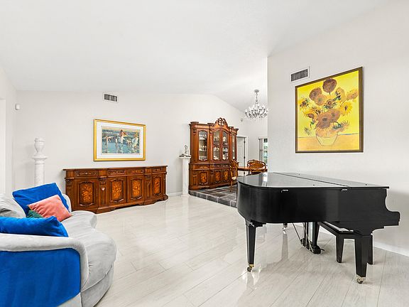 Enjoy breathtaking sunset views over the lake every night from your backyard with a private pool! Captivating single story home located in the desirable Woodland Creek neighborhood. This split floor plan is one of the larger homes in the community featuring water views in all 3 bedrooms! A 2 car garage, separate laundry room, 2 full bathrooms, living room, family room, dining room plus breakfast nook complete this stunning home. Renovations include hurricane windows and doors throughout, refreshed landscaping, and new tile flooring in the dining & family rooms as well as all 3 bedrooms. The school district features Coral Reef Elementary, Woodlands Middle School and Park Vista Community HS, all among the best in Palm Beach County. Conveniently located off of Lantana Rd and just minutes from the Florida turnpike making it just a short trip to some of the area's best restaurants, golf courses, shopping and beaches. The low HOA fee includes cable, common areas and playground. Pet Friendly. This home is truly a must see!