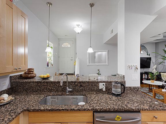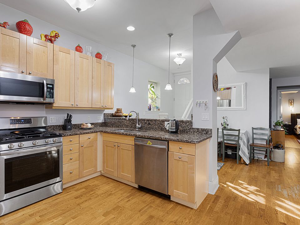 Decorative fireplaceTons of lightNeutral paintWood floorsGranite countersUpgraded stainless steel appliancesMaple cabinets