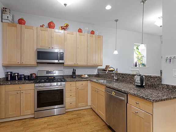 Gorgeous new rehab garden unit - 2 large bedrooms, 2 full baths, all desired modern amenities like laundry in unit, central AC, wood floors, decorative fireplace, neutral paint, maple cabinets, granite counters, upgraded stainless steel appliances, dishwasher and microwave included, tons of light, very few stairs.