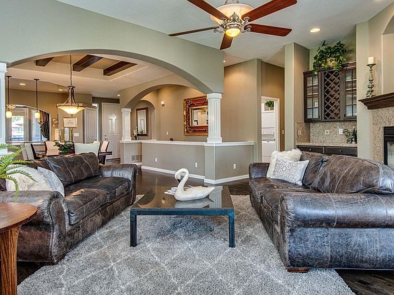 WOW! You don't want to miss this stunning patio home in Tallyn's Reach! Backs to open space! Quality finishes throughout! Gorgeous wood floors and plantation shutters throughout the main level! Fireplaces in the living room and hearth room, and a 3rd in the lower level family room! Formal living and dining rooms are open to the kitchen for easy entertaining! Beautiful gourmet kitchen with plentiful 42" cabinets and marble countertops, stainless appliances, island & breakfast bar! Luxurious master suite with coffered ceiling and ceiling fan, & the 5-piece bath features double vanities, granite countertops, jetted soaking tub, & a walk-in closet! Finished walkout basement with family room, game area, two bedrooms (both with coffered ceilings), & a full bath! Tallyn's Reach amenities (pool, tennis and clubhouse) plus the HOA shovels snow up to the front door & all exterior landscaping/mowing/water. Fabulous opportunity to own in Fieldstone! Great location...HURRY!