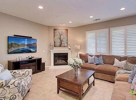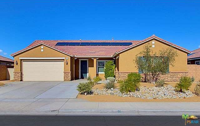 Gorgeous home with lots of upgrades, built in 2012. Built by a reputable national home builder Kaufman and Broad. This outstanding home located on a quiet street has an open floor plan. LED lighting. It has solar panels paid in full and it is included in the price! What a great deal! A spacious kitchen with double ovens and all stainless steel appliances, makes it perfect for entertaining, a fireplace in the great room with plantation shutters throughout the house. An outdoor entertainer's paradise totally landscaped and designed. Travertine floors, fire pit w/glass enclosure, built-in BBQ, built-in cold and hot water sink, built-in cooler, built-in refrigerator. What about the pool area? A salt system pool with colored pool lighting, wireless remote and a Spa with variable speed pumps (saves energy), a mister system, yard lights ready for guests and family to enjoy. 3 car garage, making this a perfect full-time residence, vacation home or even an investment property! Must See!