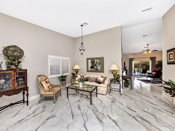 WOW! Amazing Desert Oasis home. Shows better than a Model Home. Completely updated with many luxurious and modern features. Enter through a tempered etched glass front door into a spacious living room with granite tile gas log fireplace and raised hearth. New Pianetto porcelain marble tile throughout living, family and dining rooms, kitchen, hall & bath. Porcelain wood floors in all 3 bedrooms. Updated kitchen with bamboo cabinets, newer gas cooktop, new convection & microwave, double ovens, new dining area island bar with new granite countertop. granite on other kitchen counters. Hot water dispenser in the sink. Water sensors in kitchen to help quickly alert homeowner of potential leaks & prevent the need for costly, time-consuming repairs. Plantation wood shutters throughout. Master bath has European height counters, granite tile shower stall, jacuzzi tub, double sinks & large walk-in closet, copper piping. New paint throughout the home and in the garage, except in Master Bedroom. New paint on baseboards & crown moulding in master bedroom. New evaporative cooler. All new door jams. Guest bathroom completely remodeled. Vivant alarm system with camera. But wait!, there's more - Step in to a gorgeous landscaped private backyard with a sparkling outdoor gunite pool & jacuzzi, & outdoor glass block shower, patio misters, ceiling fans and surround sound. Enjoy peach, meyer lemon, apricot fruit trees. This home is priced to sell. Hurry, don't miss out on this desert gem!
