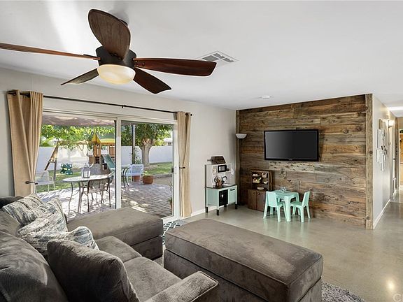 Absolutely stunning beautifully remodeled and customized home on a huge quiet private view lot. Must be seen to be believed! Great curb appeal with designer desert scape. Milgard double pane windows throughout. Newer A/C and paid off SOLAR. Enter into the open floor plan featuring a big living room with a reclaimed wood accent wall, ceiling fan and oversized slider to the immense rear yard. Cozy dining area and incredible gourmet kitchen with an island that has a built-in gas range and breakfast bar. Premium appliances including built-in oven, microwave and dishwasher. Quartz counters, custom tiled backsplashes and gorgeous walnut cabinets. Down the hall with an awesome sliding barn door covering the linen closet you'll find the ultimate master suite with mirrored closet doors and ceiling fan. A pocket door leads to the master bath with quartz vanity and fabulous big floor-to-ceiling porcelain tiled shower. The two additional bedrooms are full of unique features including mirrored closet doors, a barn door and custom built sliding metal chalkboard closet door. Incredible hall bath with a quartz vanity and one-of-a-kind fully tiled tub with shower over. The private rear view yard is surrounded by stucco block walls enclosing large lawn areas, attractive planters, trees and paver patios. Oversized 2-car garage with epoxy floors plus a separate garage with the back open to the rear yard. Low taxes. No HOA.