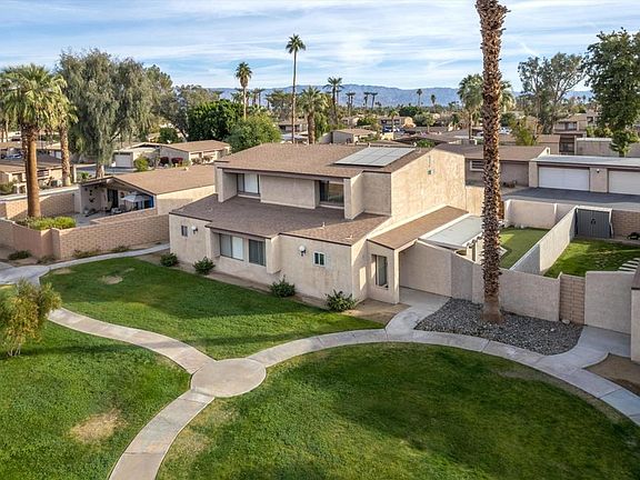 This Portola Del Sol townhome has 3 bedrooms and 2 baths with one bedroom and a bath downstairs. New laminate flooring and 4 inch baseboards, freshly painted interior, new quartz counter tops and sink in the spacious kitchen! There is a large covered patio along with a putting green great for get togethers! An attached 2 car garage with a lot of cabinets for additional storage. HOA covers water, trash, cable tv, pool and spa, tennis. Very close to El Paseo for fine dining and shopping!