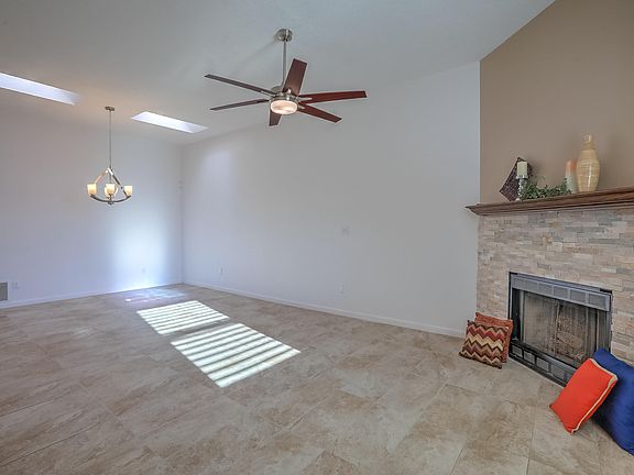 Wow! Wait till you see this brilliantly updated 1 story townhome. Conveniently located between Coors and Unser north of I-40, you'll be close to everything Albuquerque has to offer. The sellers have spent nearly $50K lovingly remodeling this gem from top to bottom including new TPO roof, tile flooring through out, new kitchen cabinets, granite counter tops and stainless appliances, new furnace and Aero cooler, newly remodeled bathrooms, stacked stone fireplace with mantle, and new plumbing, ceiling and lighting fixtures. Fully landscaped backyard with concrete walkthrough, rock landscaping and storage shed. Absolutely gorgeous!! Rush to see this one!